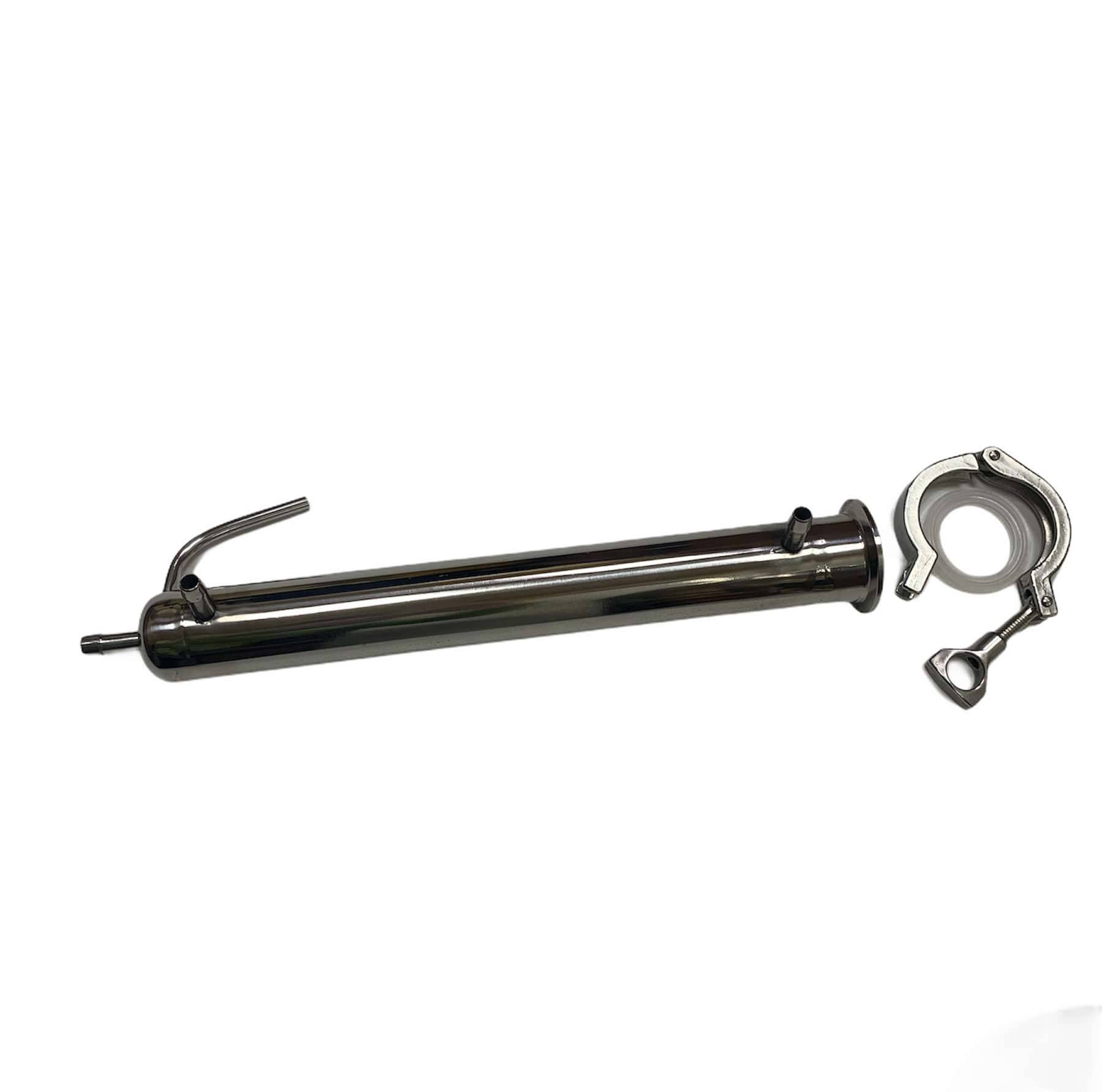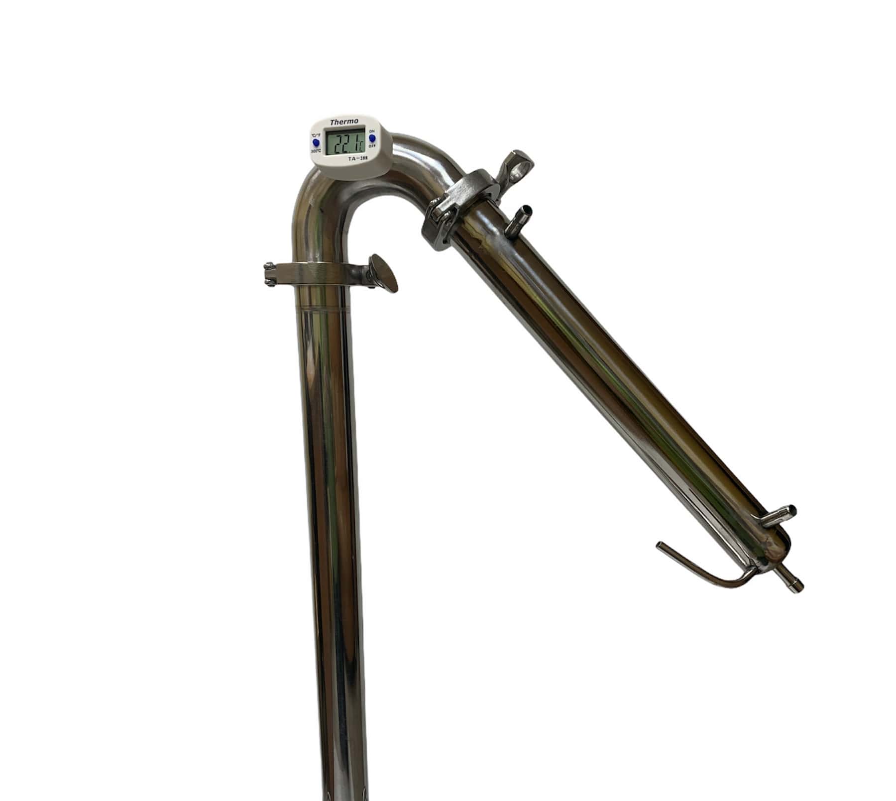 К аппарату можно дополнительно приобрести дефлегматор. Принцип работы дефлегматора в самогонном аппарате таков: пары, образующиеся во время готовки самогона возвращаются обратно в перегонный куб, что делает брагу еще более крепче, а на выходе полученный конденсат очищается от различных примесей, делая полученный напиток заметно крепче и чище.